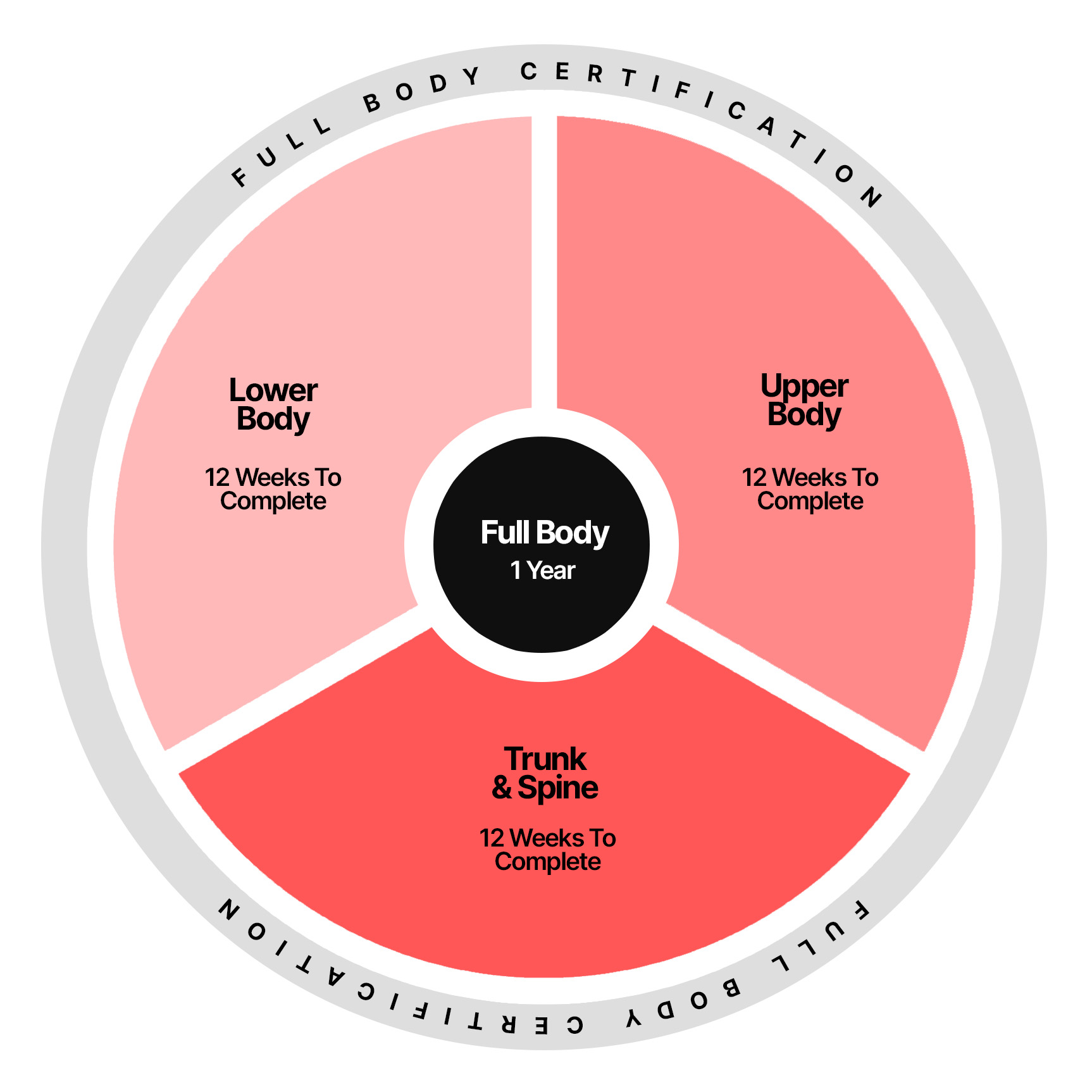 Participants can achieve certifications within Lower Body, Upper Body, and Trunk and Spine as they work toward becoming a Full Body certified Practitioner.